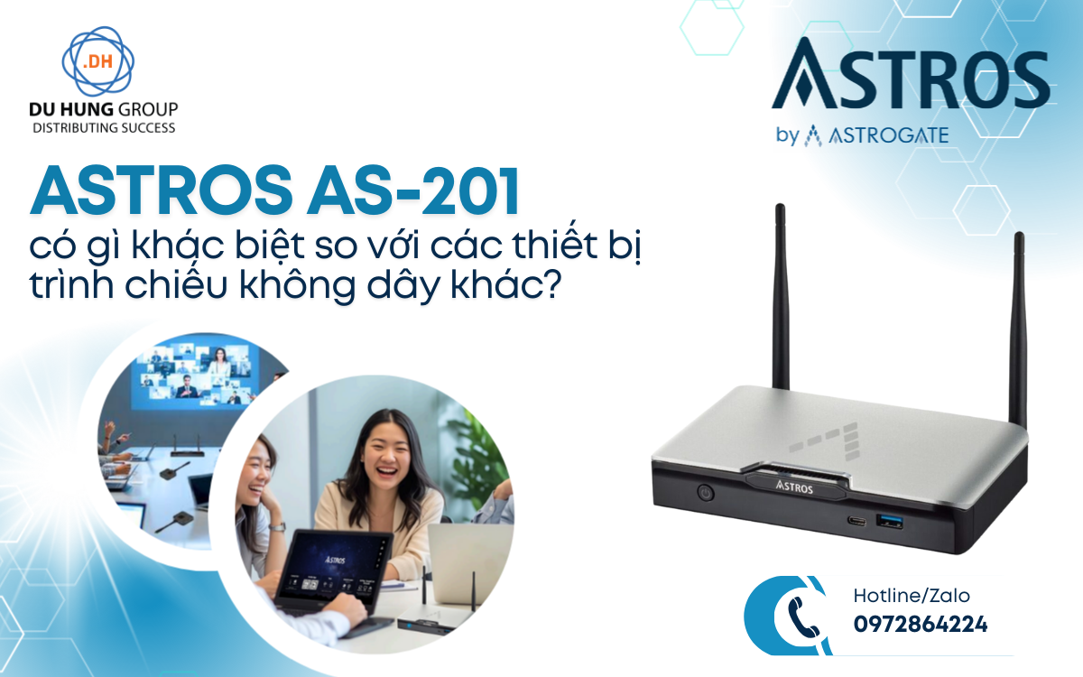 Trong bối cảnh họp không dây và làm việc linh hoạt ngày càng phổ biến, thiết bị trình chiếu không dây đã trở thành giải pháp không thể thiếu trong phòng họp và hội trường hiện đại. Tuy nhiên, không phải sản phẩm nào cũng đáp ứng tốt nhu cầu chia sẻ đa thiết bị, đa nội dung và vận hành ổn định. Astros AS-201 nổi bật nhờ khả năng trình chiếu không dây linh hoạt, hỗ trợ đa nền tảng và cộng tác hiệu quả. Vậy Astros AS-201 có gì khác biệt so với các thiết bị trình chiếu không dây khác? Bài viết dưới đây Du Hưng sẽ giúp bạn làm rõ những ưu điểm nổi bật của thiết bị này.