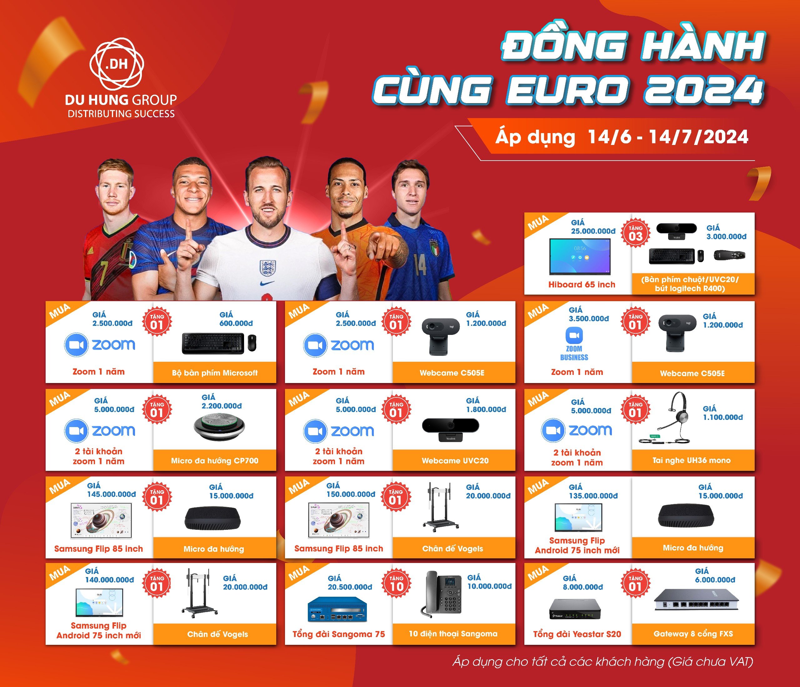 Hòa chung không khí sôi động của mùa giải bóng đá lớn nhất châu Âu – EURO 2024, Du Hưng hân hạnh mang đến chương trình khuyến mãi “Đồng hành cùng Euro 2024”cực kỳ hấp dẫn! Chương trình diễn ra từ ngày 14/06/2024 đến hết ngày 14/7/2024 với hàng loạt quà tặng khủng khi mua các sản phẩm phần mềm Zoom, màn hình tương tác, tổng đài,.. tại Du Hưng.
