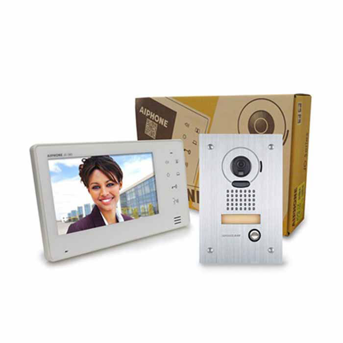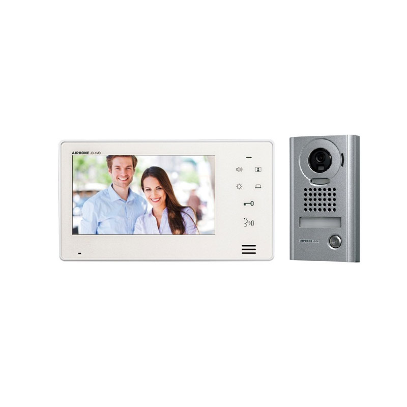 Bộ chuông cửa màn hình AIPHONE JOS-1V là 1 trong 3 bộ Video doorphone trong dòng JO Series chất lượng cao, giá rẻ của hãng AIPHONE-JAPAN. Bộ AIPHONE JOS-1V gồm màn hình màu JO-1MD và camera chuông cửa JO-DV, thiết kế đẹp, chống va đập mạnh, chất lượng tốt, độ bền cao, giá rẻ. Màn hình chính JO-1MD có màn hình màu LCD 7 inch, nút bấm cảm ứng, nút chuông kết cấu bằng hợp kim chống va đập, chức năng giám sát và liên lạc với khách tại cổng, nút nhấn mở khóa, bạn có thể lựa chọn thêm màn hình phụ JO-1FD. Camera màu gọi cửa JO-DV có vỏ màu trắng, được làm bằng hộp kim nhôm không rỉ (JK-DA bằng nhựa cao cấp), tiêu chuẩn IP54 gắn nổi (khả năng mở rộng 1 door camera và 2 monitor) chống va đập mạnh, chế độ quan sát ngày đêm tốt, rõ nét khuôn mặt.