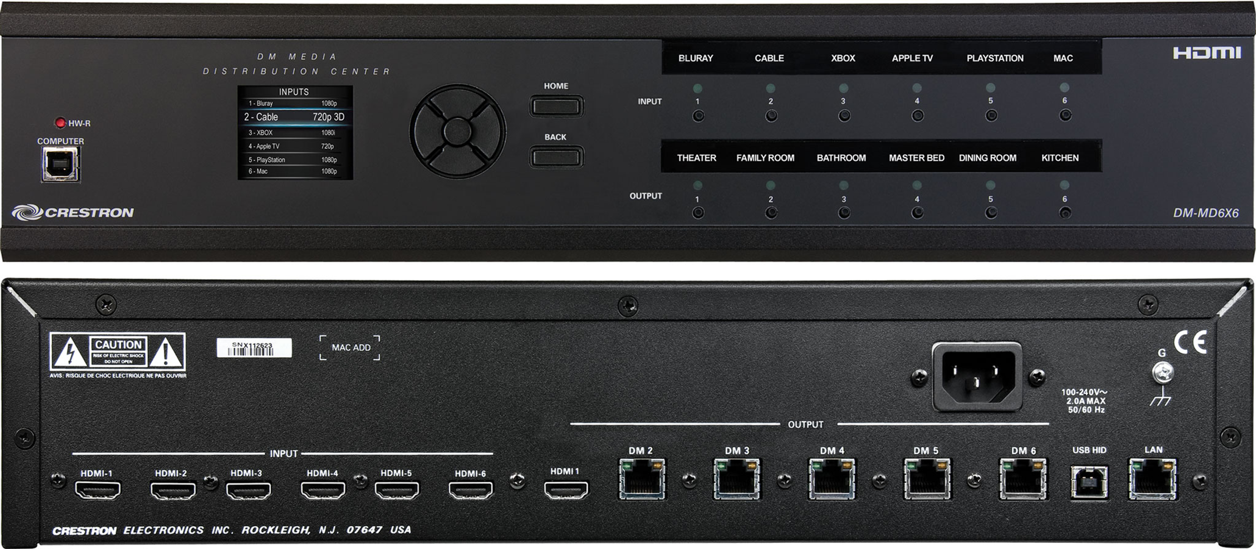 Bộ chuyển mạch DM-MD6X6 cung cấp sáu đầu vào HDMI® để xử lý đầu thu HDTV, đầu đĩa DVD hoặc Blu-ray Disc®, máy chủ đa phương tiện, máy tính và các nguồn kỹ thuật số HD khác. Các đầu ra bao gồm một cổng HDMI và năm cổng DigitalMedia, trang bị kết nối một dây đơn giản cho bộ xử lý âm thanh hoặc màn hình cục bộ và năm màn hình bổ sung ở bất kỳ đâu trong nhà. Chuyển đổi ma trận sáu x sáu cho phép bất kỳ màn hình nào có thể xem bất kỳ nguồn nào vào bất kỳ lúc nào.