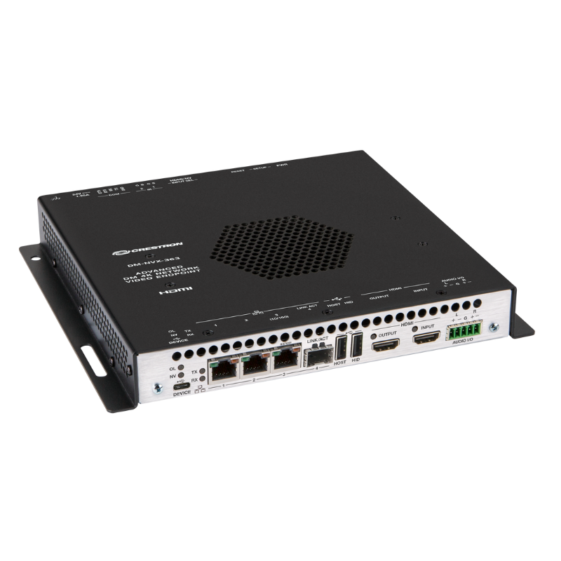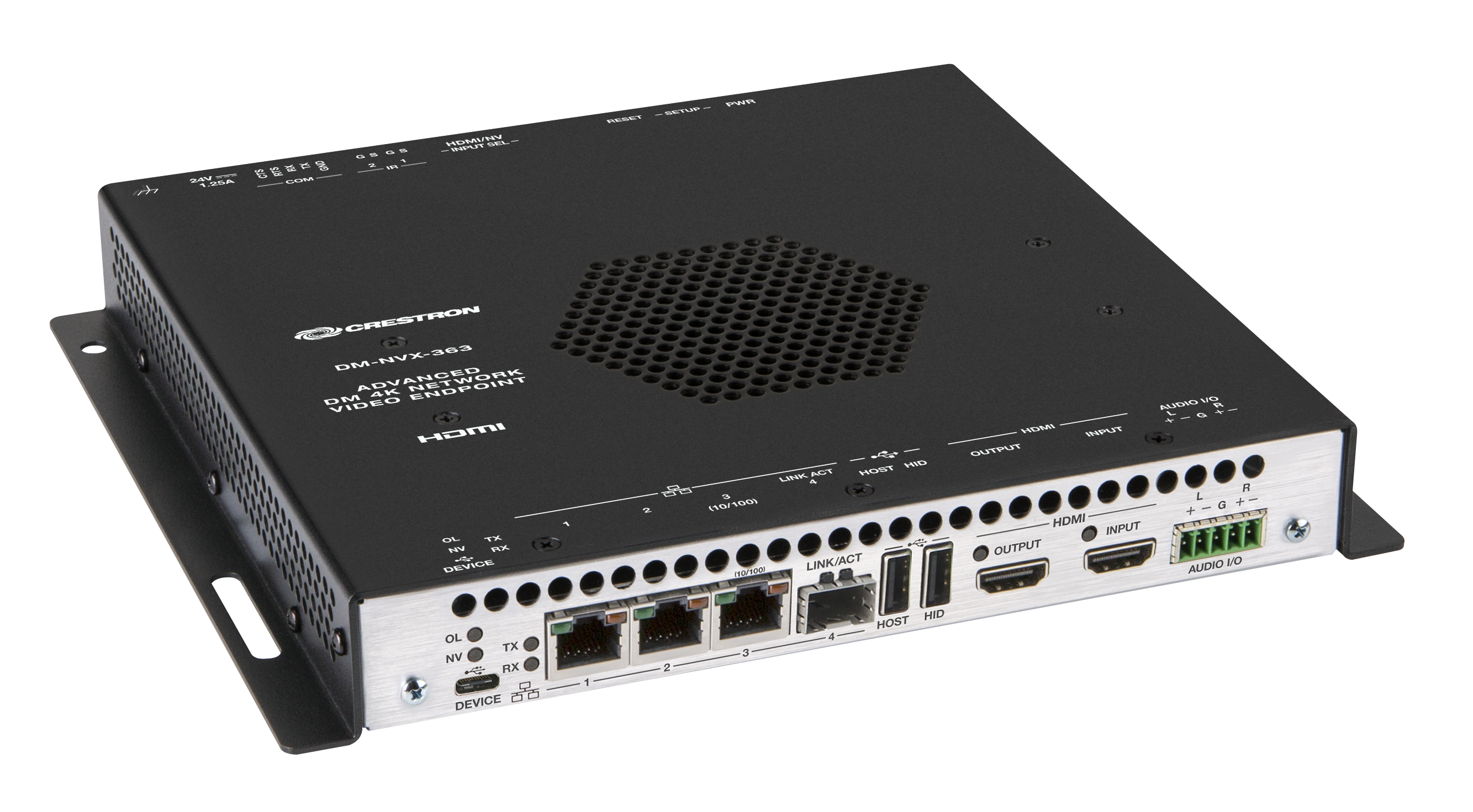 Crestron DM-NVX-363 là một bộ mã hóa / giải mã AV-over-IP nhỏ gọn được thiết kế để hoạt động như một bộ phát hoặc bộ thu. Có khả năng xử lý cài đặt AV mạng ở bất kỳ kích thước nào, DM ‑ NVX ‑ 363 bao gồm các tính năng như quản lý và điều khiển dựa trên web an toàn, đầu ra HDMI® mở rộng, xử lý video wall, đầu vào hoặc đầu ra âm thanh analog, âm thanh vòm với downmixing, khả năng truyền và nhận Dante® và AES67 nguyên bản, tích hợp USB 2.0 và KVM, đồng thời hỗ trợ kết nối Ethernet đồng và cáp quang.