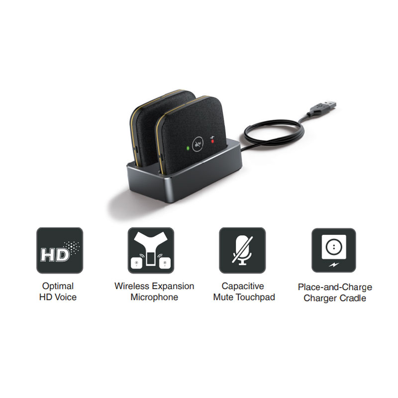 Đi kèm với điện thoại hội nghị Yealink CP965 là một cặp Mic mở rộng DECT không dây Yealink CPW65 giúp giải quyết nút cổ chai trong việc thu âm trong các phòng họp lớn. Thiết bị đi kèm với một lớp vỏ vải màu đen và có đặc tính chống thấm nước, chống dầu mỡ và chống bám bẩn.