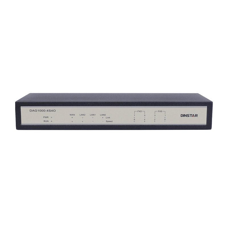 Dinstar DAG1000-4S4O là cổng thoại và fax đa năng dựa trên IP. Được sử dụng dành cho các doanh nghiệp nhỏ, các văn phòng tại gia, văn phòng ở xa, các chi nhánh doanh nghiệp cung cấp giải pháp VoIP chi phí thấp, hoạt động đơn giản. FXS / FXO kết hợp cổng kết nối hỗ trợ khi mất kết nối mạng hay mất điện, linh hoạt nhận ra khả năng tương tác với PBX mô phỏng và đảm bảo chất lượng thoại trong quá trình chuyển đổi thoại truyền thống sang thoại IP. Hỗ trợ giao thức SIP tiêu chuẩn và IPPBX chính thống tương thích và nền tảng softswitch.