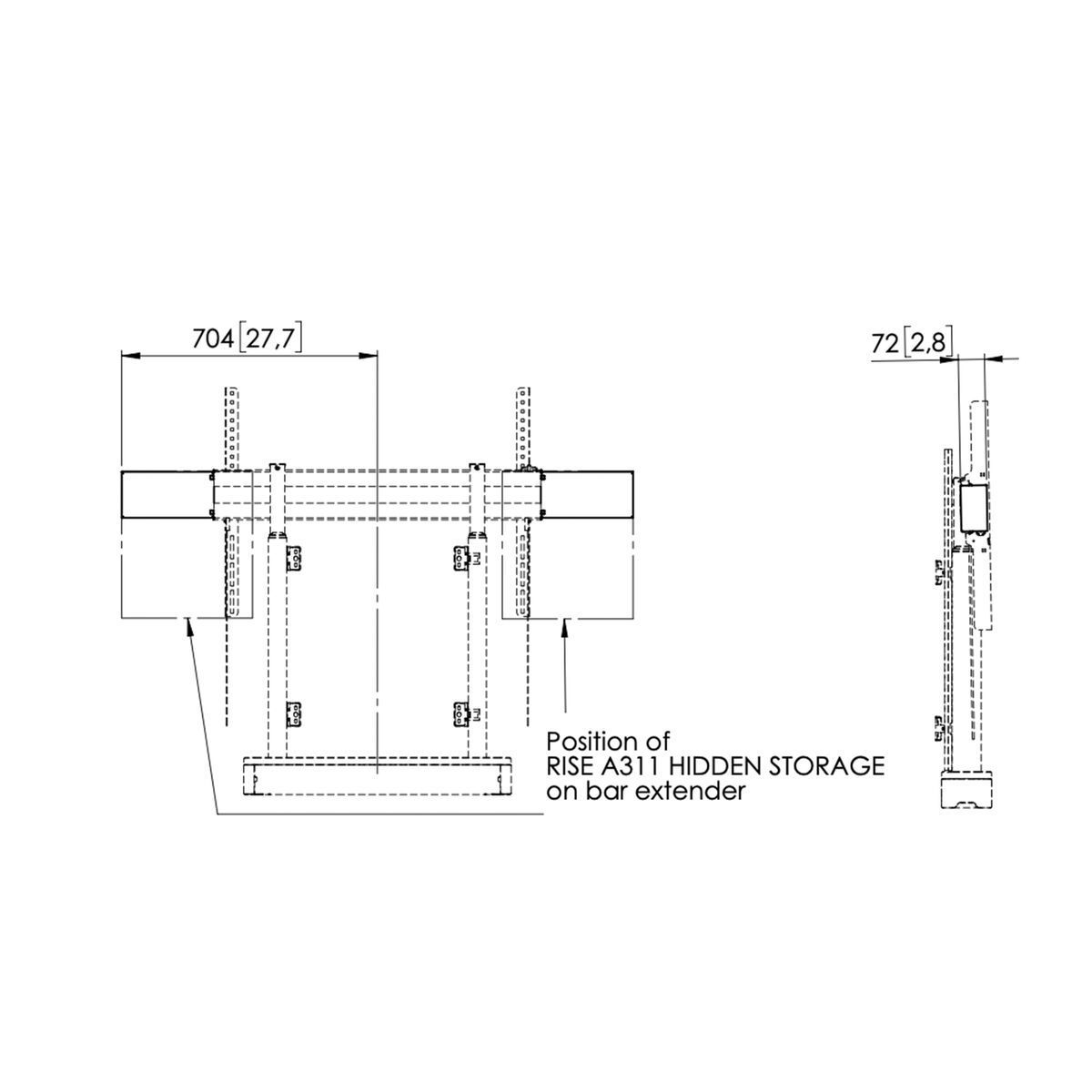 Thanh mở rộng RISE A321 để lắp đặt ở mặt sau của khung nâng màn hình chỉ phù hợp khi kết hợp với một hoặc nhiều phụ kiện RISE A311.