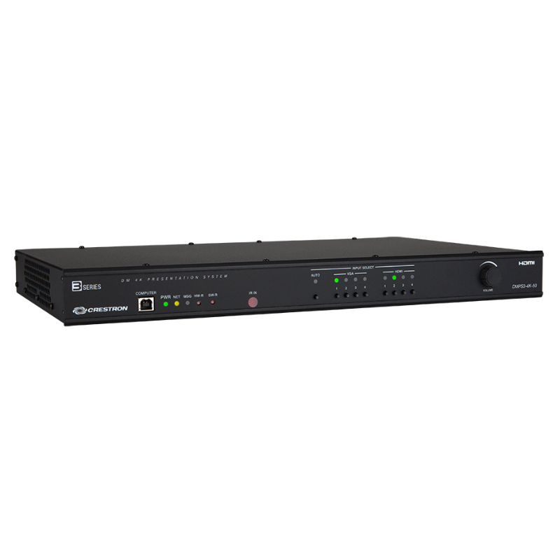 Hệ thống trình chiếu 3-Series 4K DigitalMedia 50 DMPS3-4K-50 của Crestron cung cấp giải pháp điều khiển và chuyển đổi trình chiếu độ nét cực cao, hoàn hảo cho các phòng họp, phòng hội nghị và lớp học. Nó tích hợp hệ thống điều khiển, bộ chuyển đổi đa định dạng, bộ chia tỷ lệ video 4K và DSP âm thanh, tất cả vào một thiết bị nhỏ gọn có thể gắn thuận tiện dưới bàn hội nghị hoặc trong giá thiết bị. Chức năng Crestron Connect It ™ tích hợp mang lại một giải pháp cộng tác hoàn chỉnh, dễ dàng và giá cả phải chăng để triển khai trong mọi không gian họp có quy mô vừa và nhỏ. Không yêu cầu bất kỳ lập trình nào, DMPS3-4K-50 có thể dễ dàng cấu hình cho nhiều ứng dụng trình chiếu đa phương tiện.