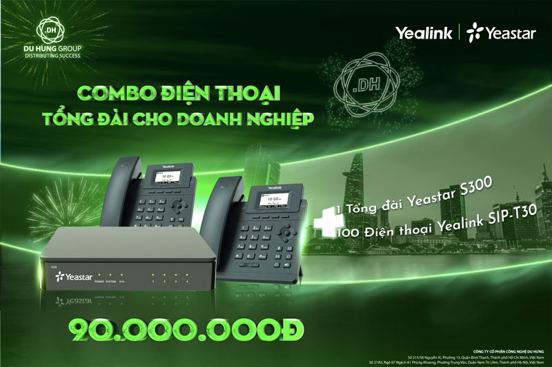 Trọn bộ tổng đài IP Yeastar S300 và 100 điện thoại Yealink SIP T30 bao gồm 1 tổng đài Yeastar S300 và 100 điện thoại Yealink SIP T30 phù hợp lắp đặt sử dụng cho các doanh nghiệp vừa và nhỏ. Hệ thống tổng đài IP S-Series của yeastar có khả năng tương thích tốt với rất nhiều những mẫu điện thoại trong đó dẫn đầu là điện thoại Yealink.