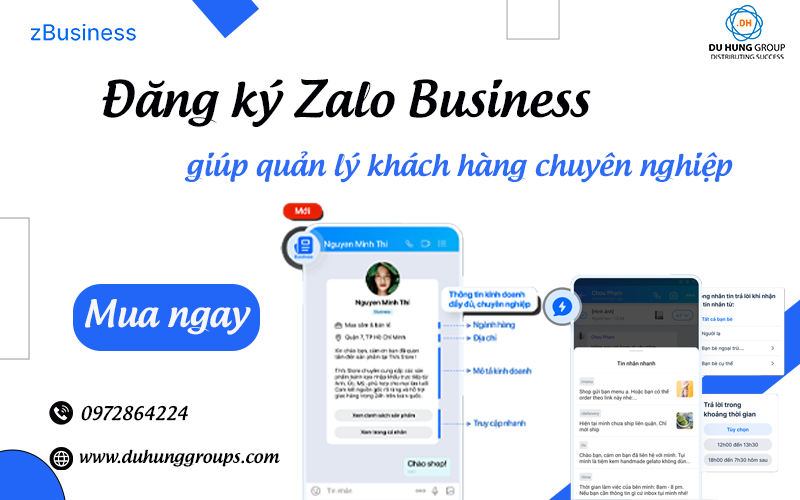 >> Liên hệ ngay đến Du Hưng theo Hotline/ Zalo 0972864224  để được tư vấn chi tiết và sở hữu ngay bản quyền Zalo Business Pro ngay hôm nay.