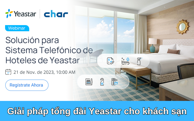 Bạn có muốn tìm ra giải pháp giúp cho khách sạn của bạn vận hành hiệu quả hơn? Hãy tham gia webinar Giải pháp tổng đài Yeastar cho khách sạn cùng chúng tôi vào lúc 10:00 sáng ngày 21 tháng 11 (giờTây Ban Nha) để tìm hiểu sâu hơn về các sản phẩm đẳng cấp thế giới của Yeastar và các giải pháp tùy chỉnh nổi bật để giúp bạn xác định những điểm yếu của khách hàng và mang lại giá trị.
