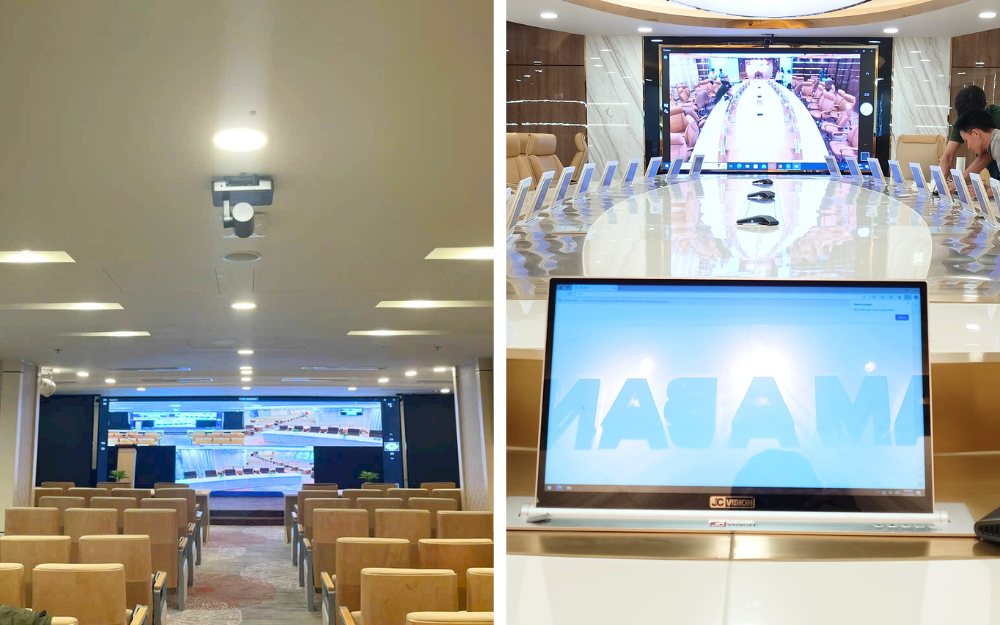 Với không gian phòng họp lớn cùng hệ thống micro, loa sẵn có, giải pháp được lựa chọn triển khai cho 2 phòng họp doanh nghiệp là giải pháp kết hợp camera Yealink UVC84, Yealink UVC86 cùng thiết bị kết hối và điều khiển của Yealink. Đây là giải pháp camera hoàn hảo cho không gian phòng họp lớn củadoanh nghiệp giúp đảm bảo chất lượng hình ảnh và âm thanh tốt cho các cuộc họp.