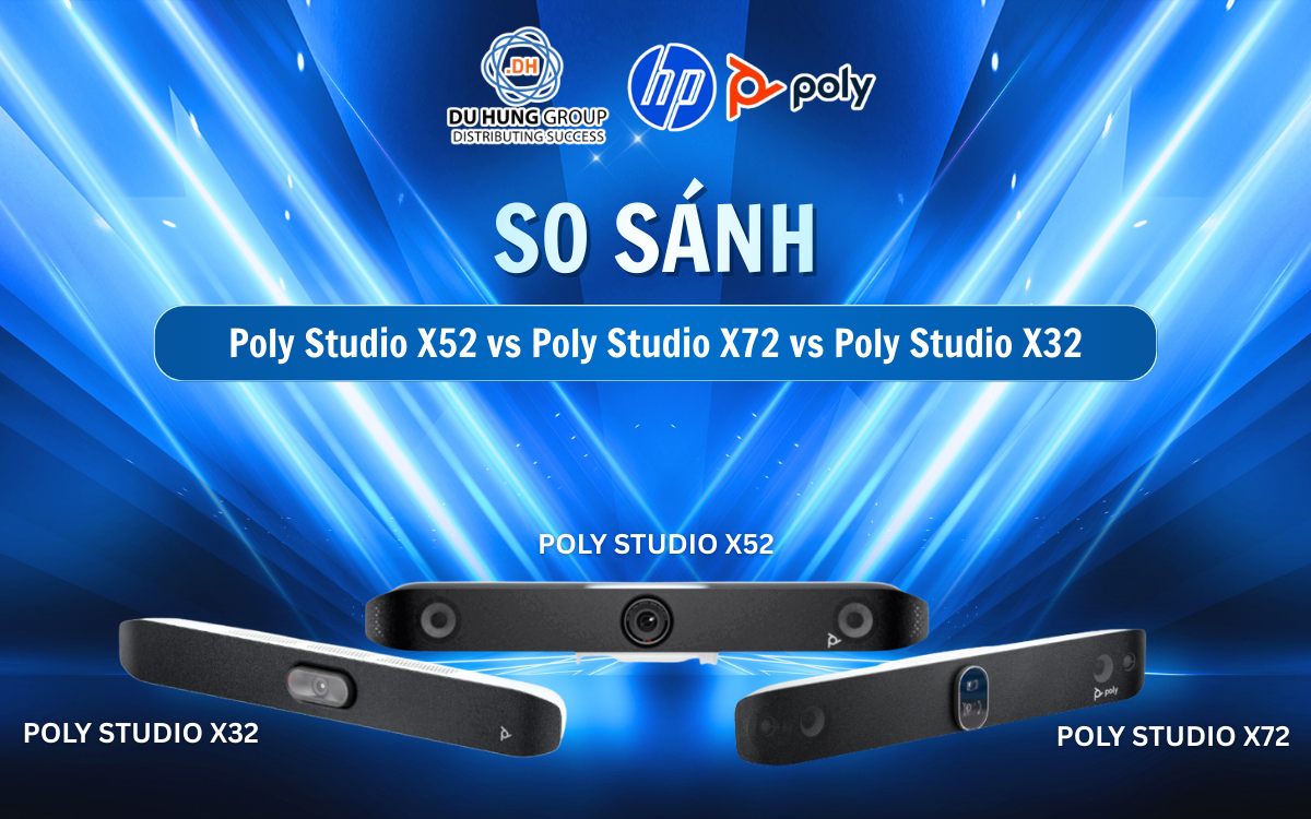 Trong số các giải pháp video conferencing hiện nay, dòng Poly Studio X Series nổi bật nhờ thiết kế video bar All-in-One tích hợp camera 4K, micro, loa và trí tuệ nhân tạo (AI), giúp đơn giản hóa việc triển khai hệ thống họp trực tuyến nhưng vẫn đảm bảo chất lượng hình ảnh và âm thanh chuyên nghiệp. Ba model phổ biến nhất của dòng sản phẩm này gồm Poly Studio X32, Poly Studio X52 và Poly Studio X72, mỗi thiết bị được tối ưu cho những quy mô phòng họp khác nhau từ nhỏ đến lớn. Vậy sự khác biệt giữa Poly Studio X32, X52 và X72 là gì, và doanh nghiệp nên lựa chọn thiết bị nào cho phòng họp của mình? Bài viết dưới đây sẽ giúp bạn so sánh chi tiết ba dòng video bar AI này để đưa ra quyết định phù hợp nhất.