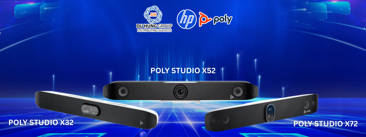 Trong hệ sinh thái thiết bị hội nghị truyền hình của Poly, dòng Poly Studio X Series là nhóm video bar All-in-One tích hợp camera 4K, micro, loa và hệ điều hành hội nghị được nhiều doanh nghiệp lựa chọn để xây dựng phòng họp hiện đại. Ba model nổi bật nhất hiện nay gồm Poly Studio X32, Poly Studio X52 và Poly Studio X72 – mỗi thiết bị được thiết kế cho một quy mô phòng họp khác nhau.