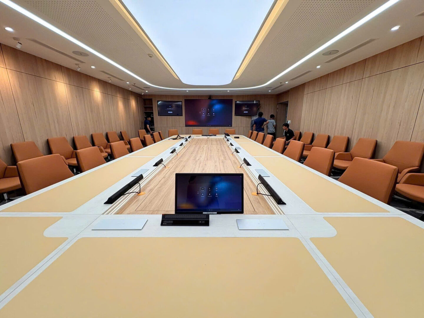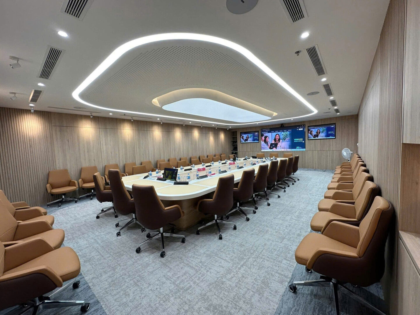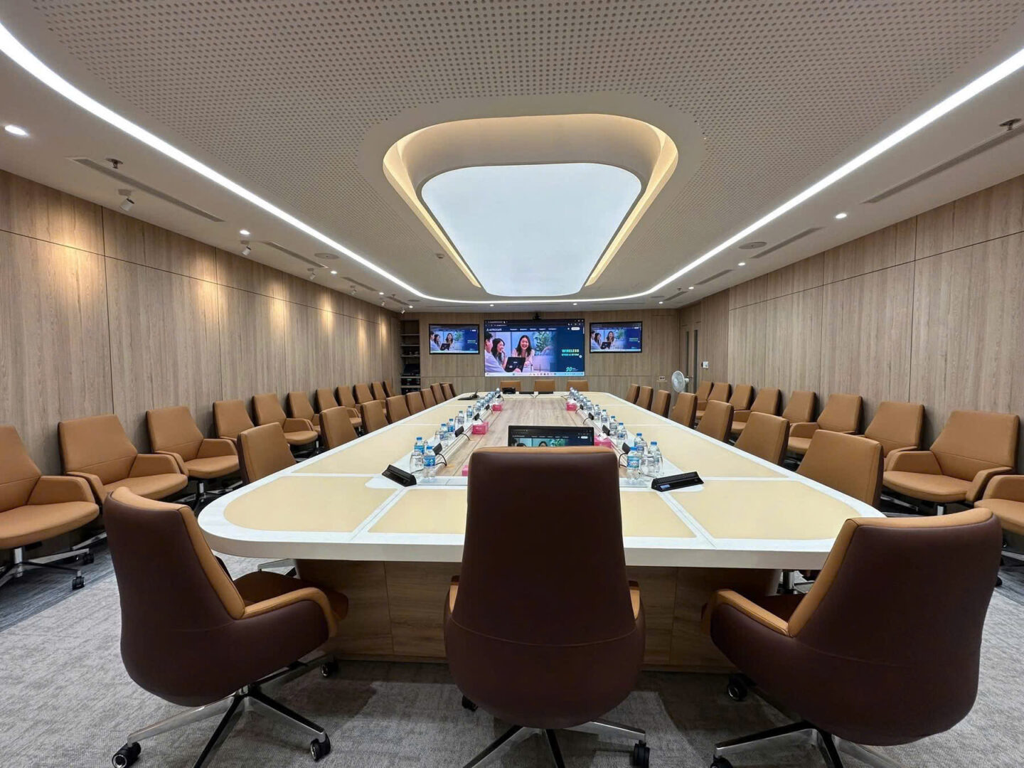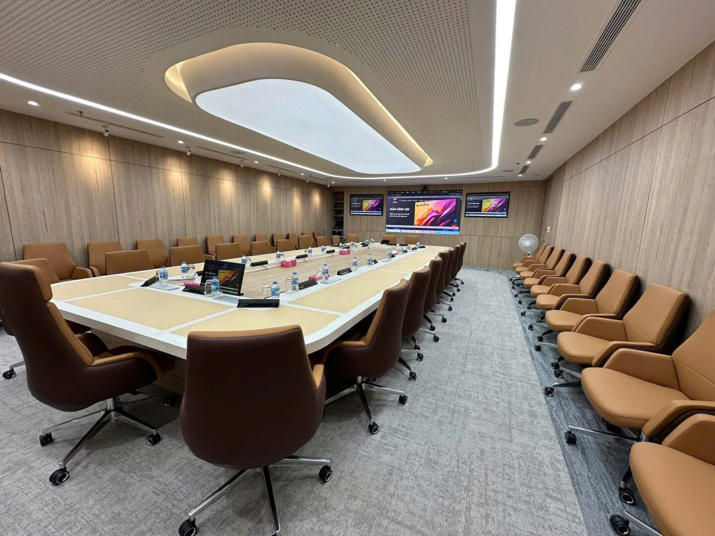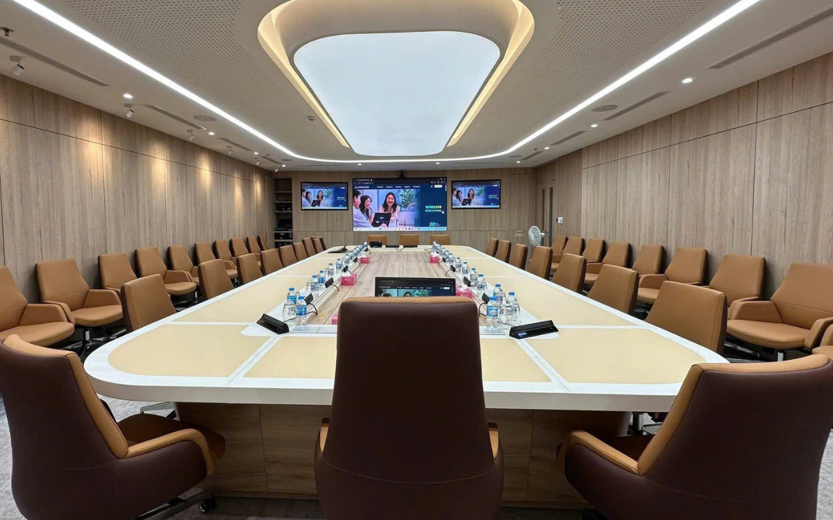 Hệ thống được thiết kế và triển khai dựa trên các tiêu chuẩn kỹ thuật hiện đại, phù hợp với mô hình phòng họp Team Room, đáp ứng hiệu quả nhu cầu họp nội bộ, họp trực tuyến với các đơn vị thành viên và đối tác trong và ngoài nước.