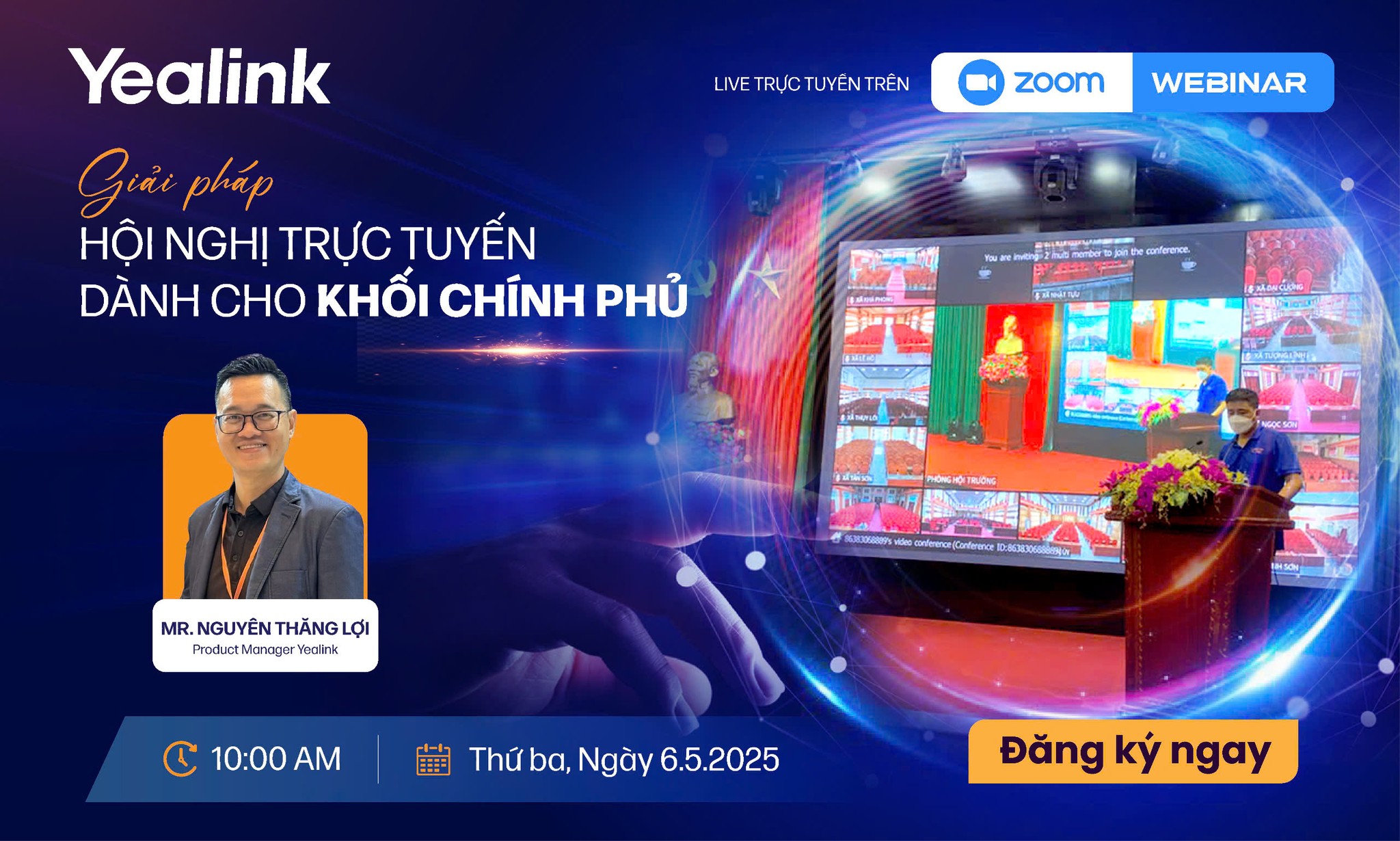 Với mục tiêu hỗ trợ các cơ quan, đơn vị hành chính nhà nước triển khai hiệu quả các giải pháp hội nghị trực tuyến, vào lúc 10h00, thứ 3 ngày 06/05/2025, Công ty Du Hưng phối hợp cùng Yealink tổ chức buổi webinar chuyên đề “Giải pháp Hội nghị Trực tuyến dành cho Khối Chính phủ”.