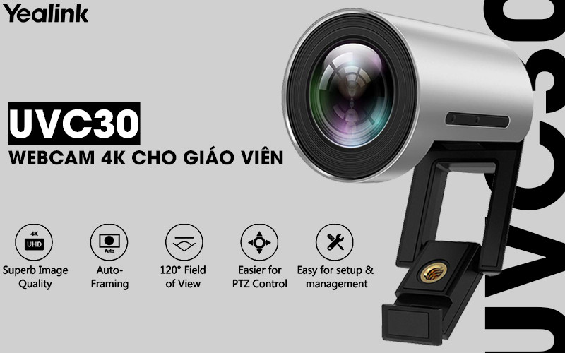 Webcam UVC30 là thiết bị Ultra HD thương hiệu Yealink dành cho máy tính để bàn tích hợp Micro HD 1080P. Camera phát trực tuyến video thông minh, kết hợp tính năng Windows Hello giúp bảo mật đăng nhập cho giáo viên. Đồng thời hoạt động trên Microsoft Teams và Skype.